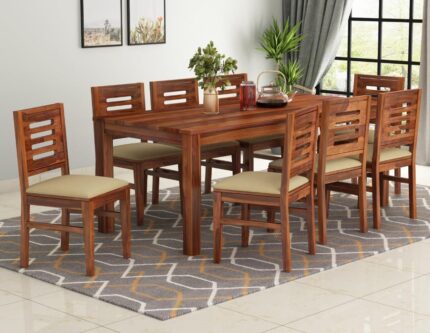 Rask Wood Solid Wood 8 Seater Dining Table Set with 8 Cushioned Chair for Living Room
