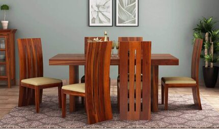 Rask Wood Solid Wood 6 Seater Dining Table with 4 Cushioned Chair