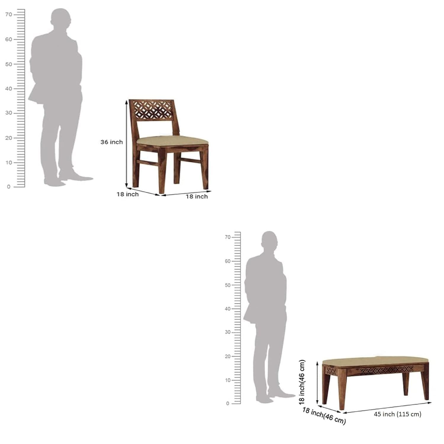 - This dining set is made from solid sheesham wood, which allows for super stability and ensures the set excellent durability and a long service life.