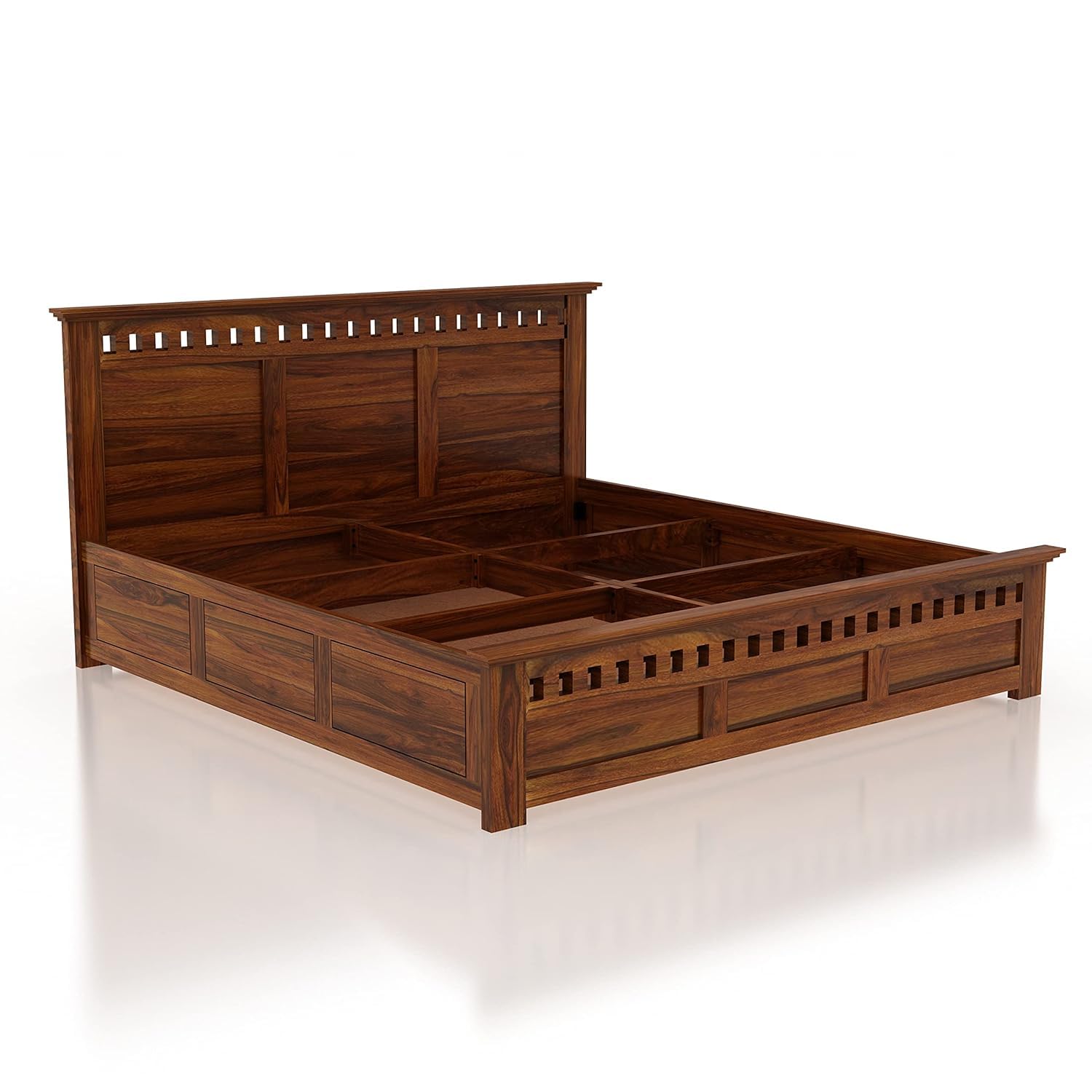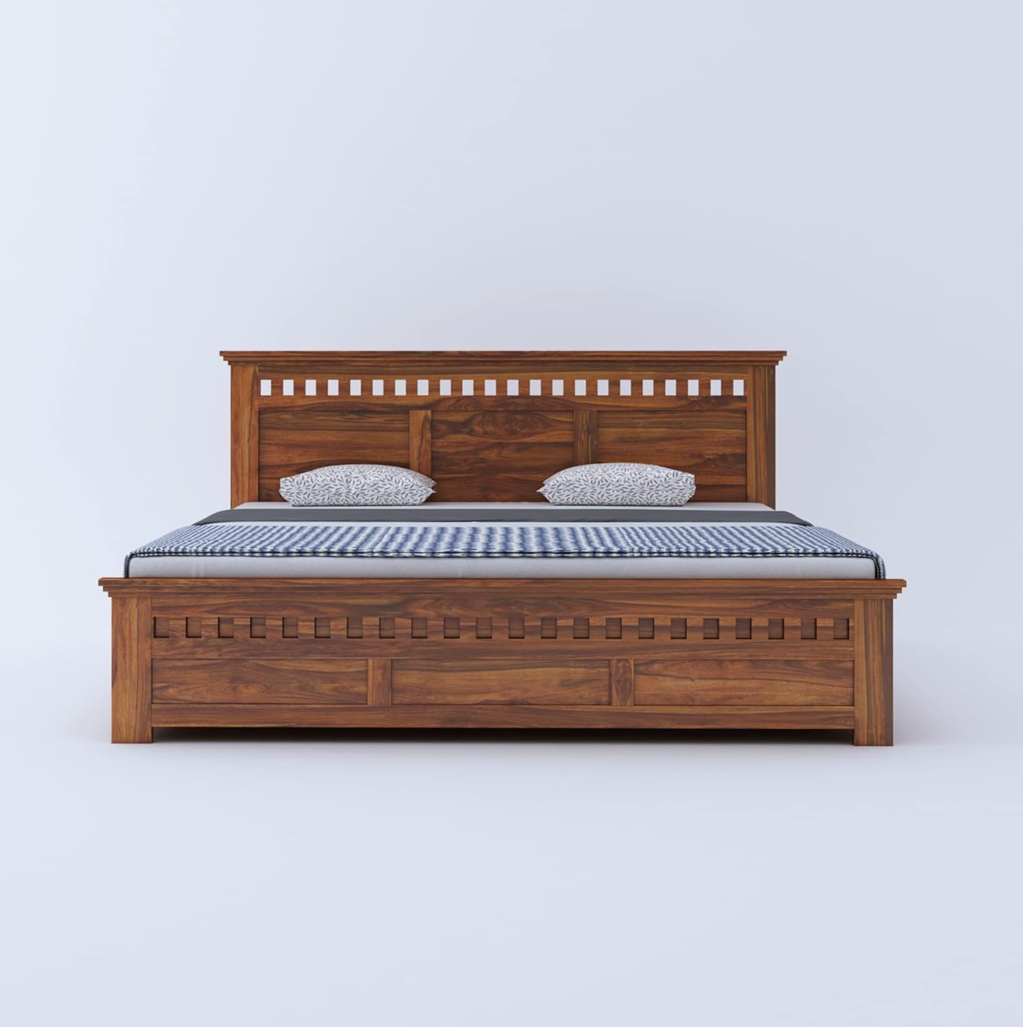 - Sheesham Wood Construction: Experience the epitome of luxury and durability with the solid Sheesham wood construction. The bed frame showcases the natural beauty of wood grain patterns, adding a touch of sophistication to your bedroom.