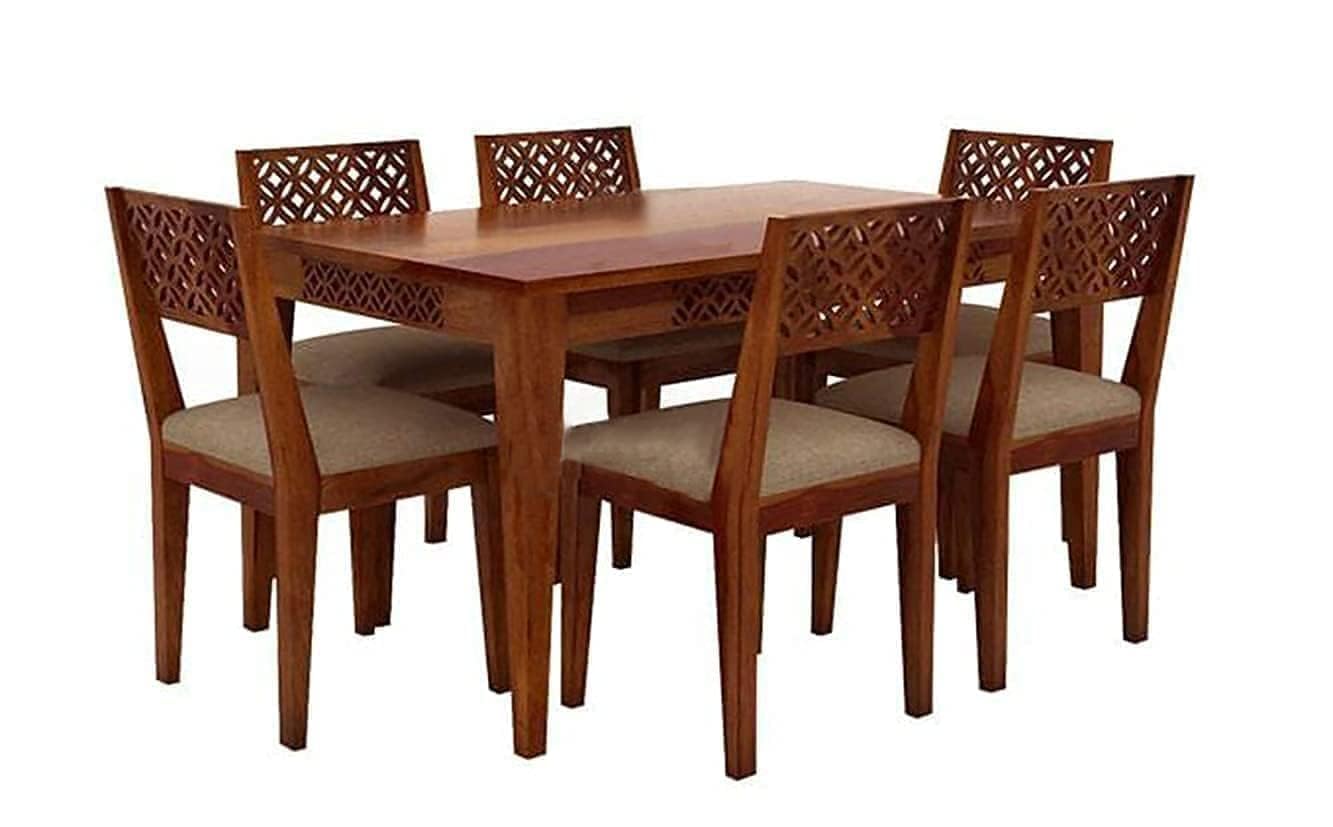 Rask Wood Wooden 6 Seater Dining Table Set with 6 Chair for Dining Room Home