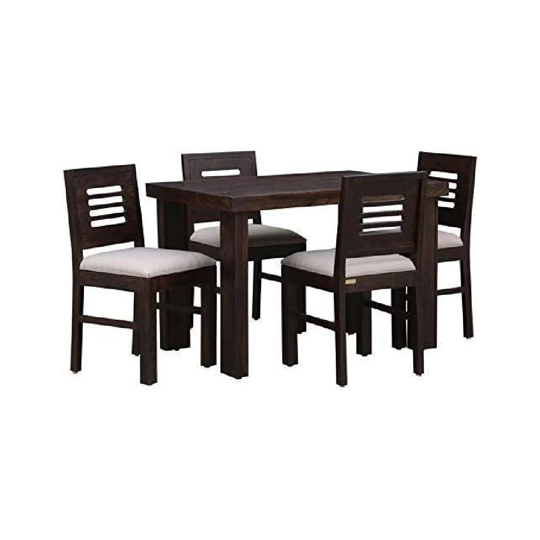 - This 4 Seater Dining Table Set Made of Solid Sheesham Wood with Walnut Finish. This Dining set for Dinner Simple and Elegant Design Better Meets Your Home Style Requirements and Can be Matched with Different Styles of Decoration