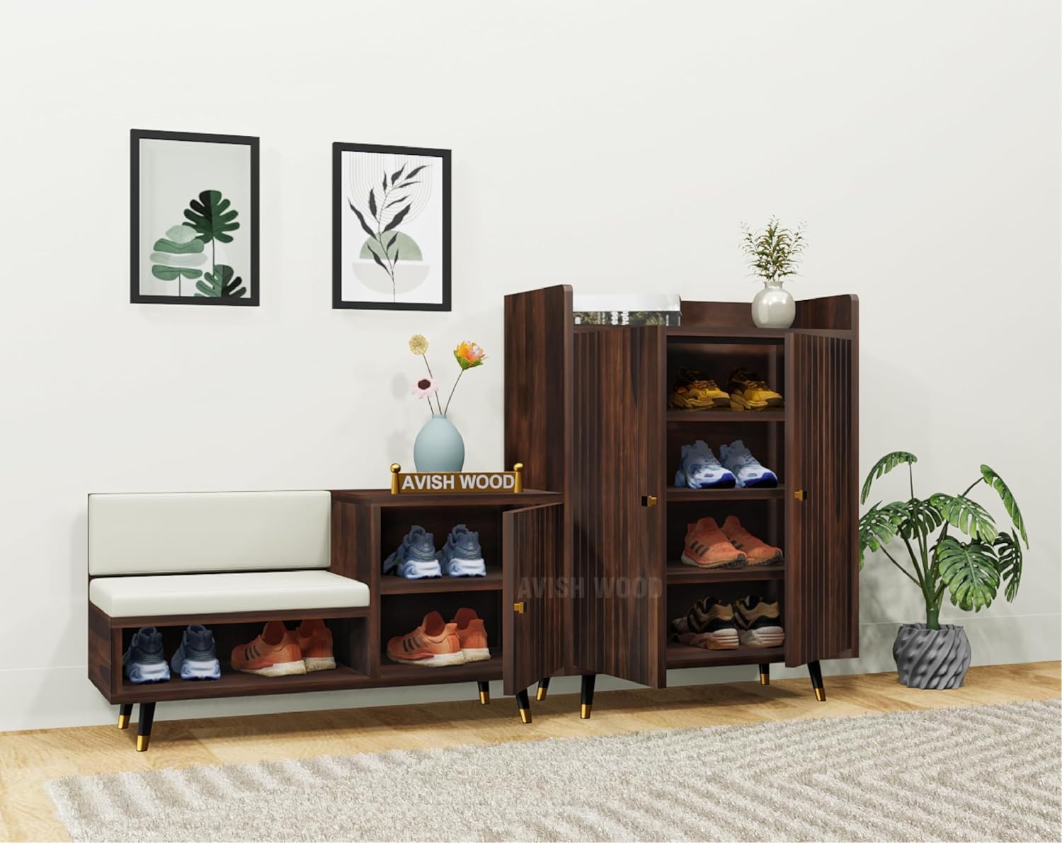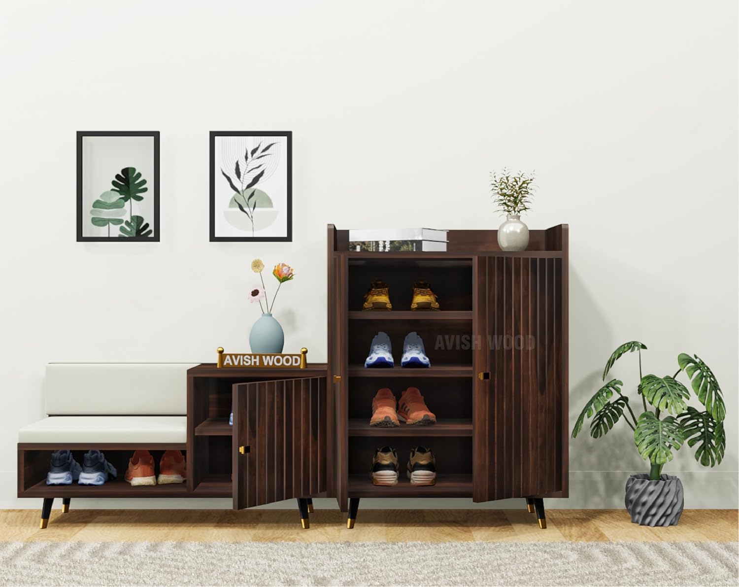 • Sturdy & Durable: Crafted from solid Sheesham wood, this shoe cabinet ensures long-lasting quality and stability.