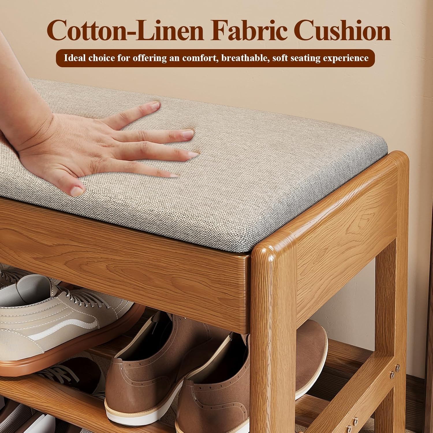 - 【Sturdy Construction】-Crafted from high-quality solid wood, entryway shoe storage bench boasts a solid structure that can support up to 330lbs without wobbling or tilting, ensuring durability and longevity