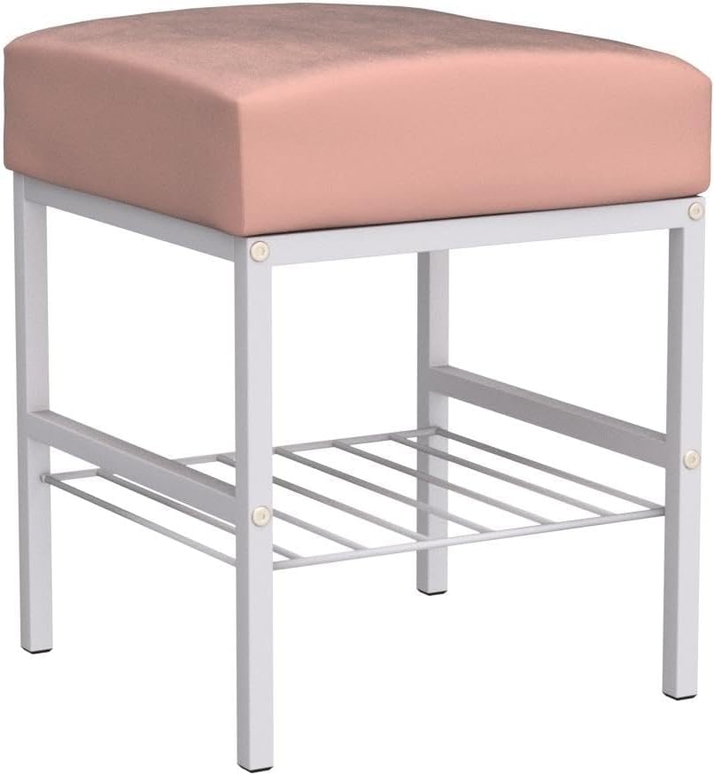 - Comfortable and Durable Ottoman:Our shoe changing stool adopts an elegant minimalist style design, white vanity stool cushion is made of high resilience foam covered with sumptuous smooth velvet fabric. High hardness metal legs makes this stool ottoman a strong sturdiness and not easy to deform